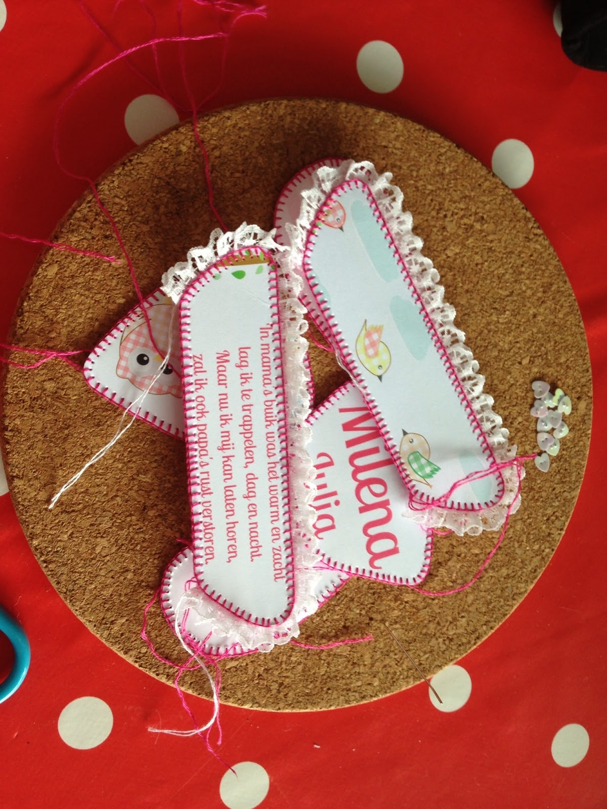 Eventueel: Kant, veertjes, glitters, bloemetjes, enzovoorts.