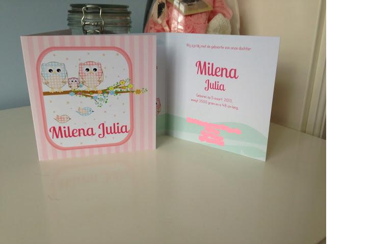 Geboortekaartje (liefst 2), patroon, potlood, schaar, prikpen, borduurgaren, lint, kunststof vorm (bol, ei, hart of ster).