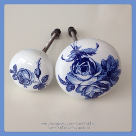 Deze kastknopjes hebben mij samen € 0,85 gekost. Alleen al door de prijs moest ik ze kopen, dan komt de handelaar in mij boven. Voor nu staan ze op de kast in een glazen pot te pronken bij de kantjes van Oma’s Tijd. 🙂