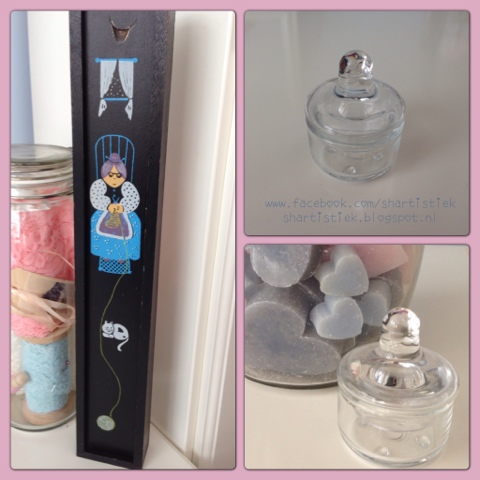 Donderdag heb ik samen met mijn zus nog even een rondje kringloop gedaan. Mijn man was thuis met de jongens, dus we konden even rustig kringlopen. Ik vond een heel klein dekseltje van glas voorÂ
