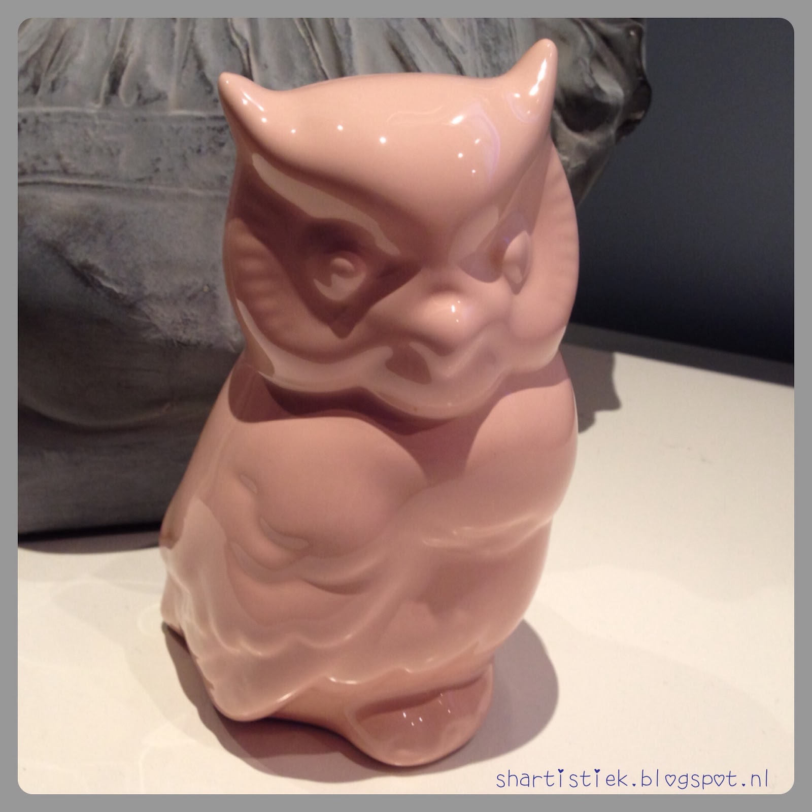 Ineens werd ik aangetrokken door een uil, die wel dezelfde kleur had, maar zich vast heel ongemakkelijk moest voelen tussen die lachende beren. 🙂