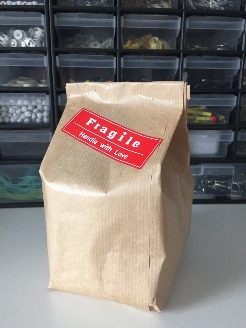 Om niet meteen te verraden wat Hugo aan de juf zou geven, heb ik buiten een folie ook een papieren zak eromheen gedaan.