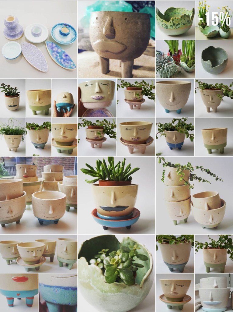 Op Instgram doe ik altijd veel inspiratie op. Zowel op het gebied van planten als interieurstyling en handwerkideeën. Zo trof ik eens per toeval het account van Atelier Appelig, die vooral bekend stond om de handgemaakte keramieken potjes met een gezicht. Ik was direct verkocht en begon te volgen.