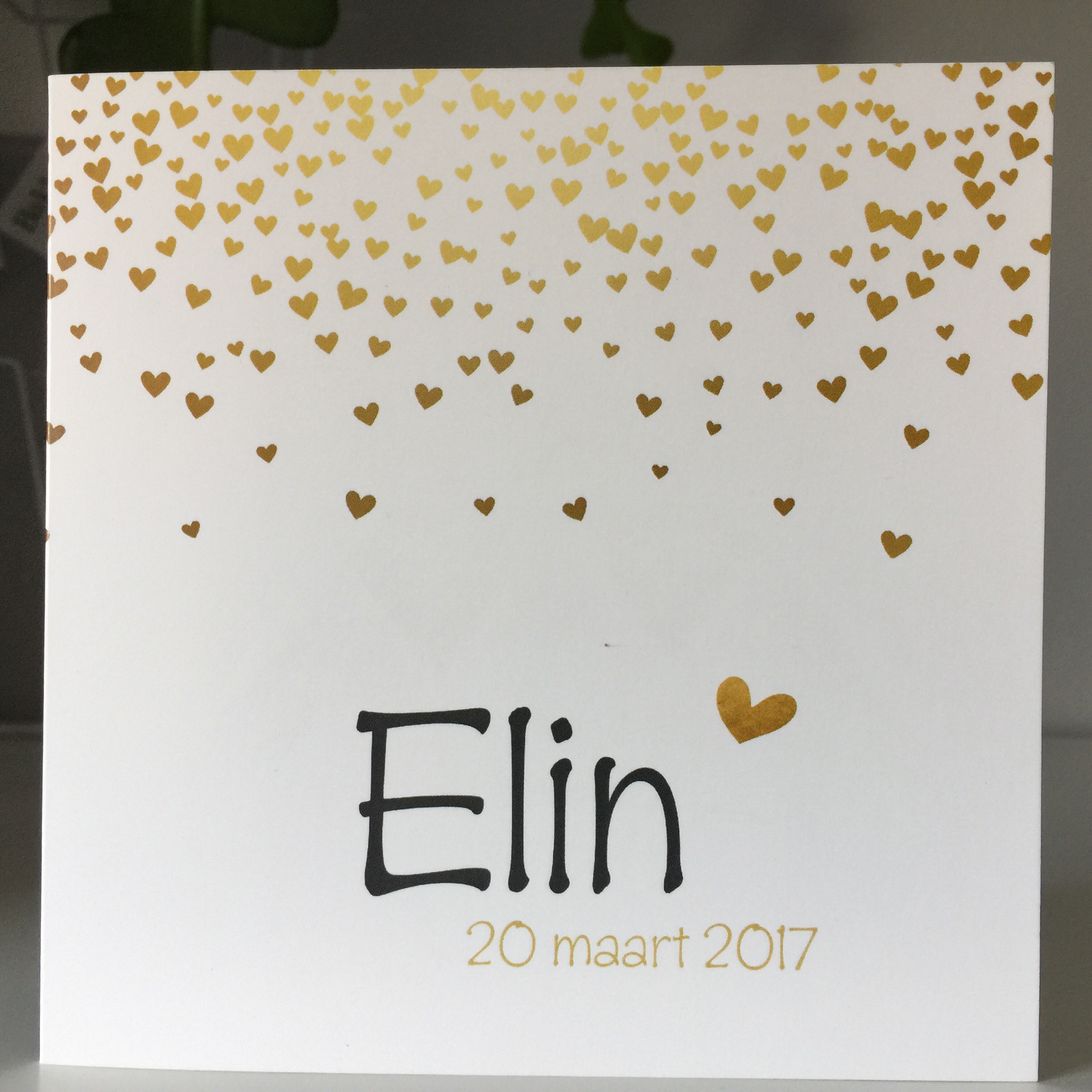 Onlangs stuurde een oud-collega het geboortekaartje van Elin. Het kaartje is eenvoudig, maar het sprak me aan. Ik denk door de hartjes. Ik zie vaak in gedachten al een soort eindresultaat en dat zag er goed uit! 🙂