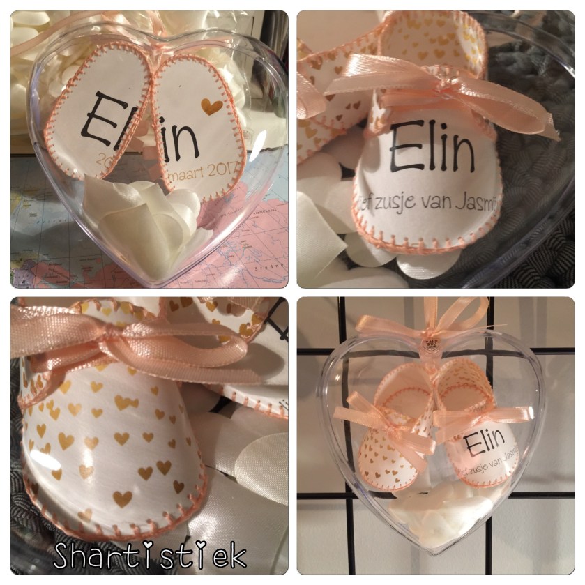 Zo nu en dan krijg ik een verzoekje van over de grens. Nog niet zo vaak, maar als ik ze krijg, vind ik dat erg leuk! Ik maakte bijvoorbeeld al eens geboorteschoentjes voor een jongetje in Oostenrijk en voor een meisje in Australië.