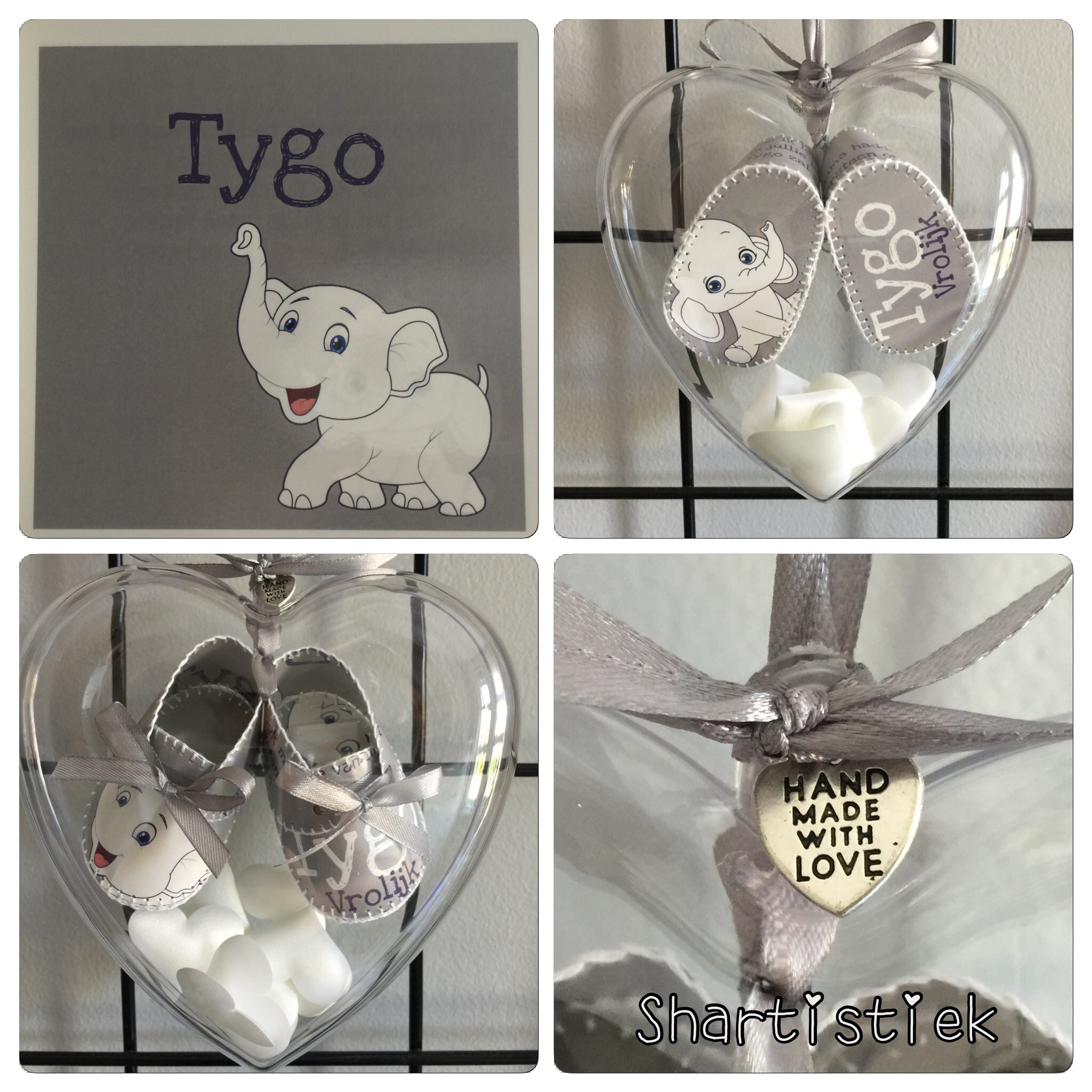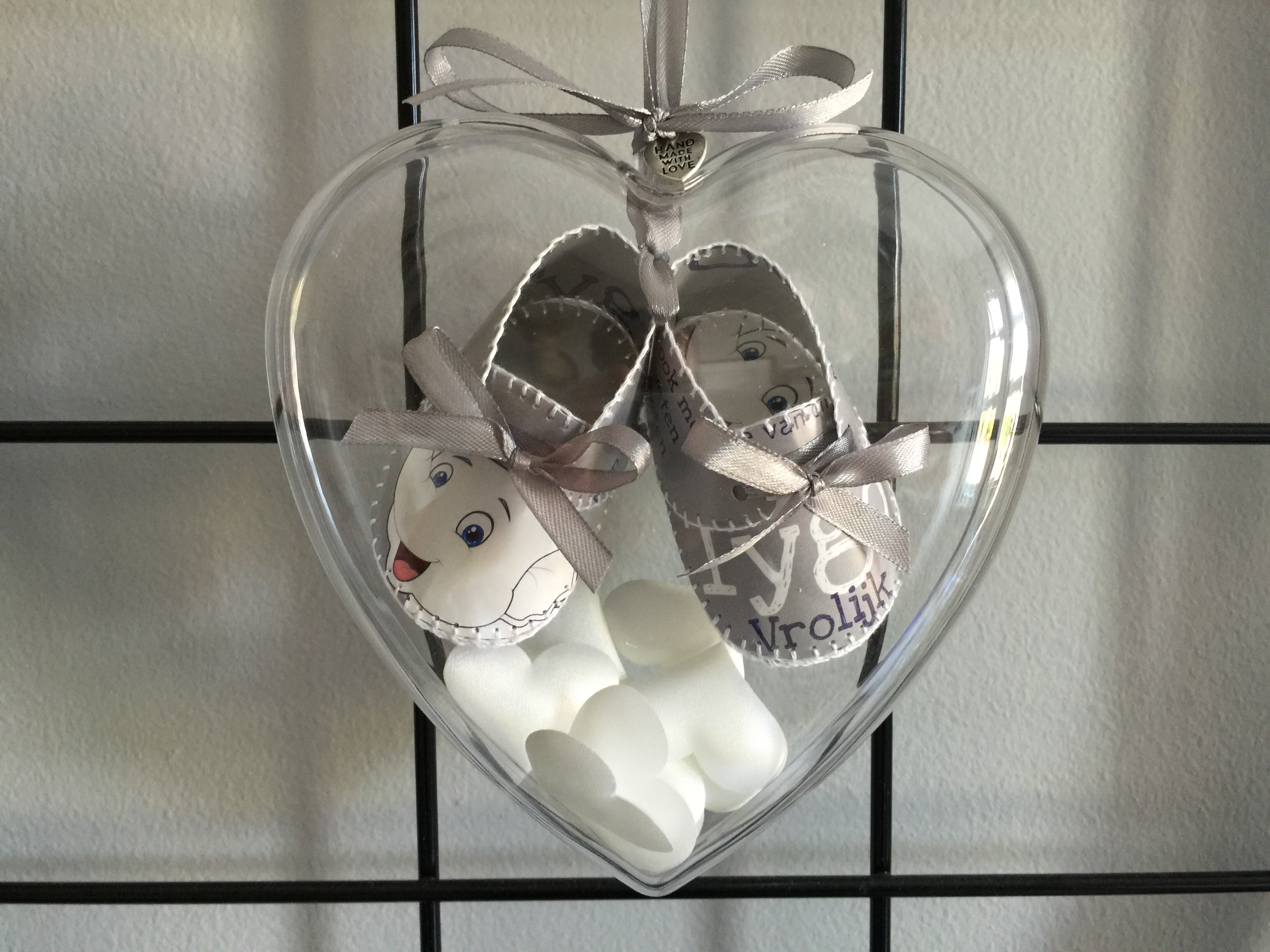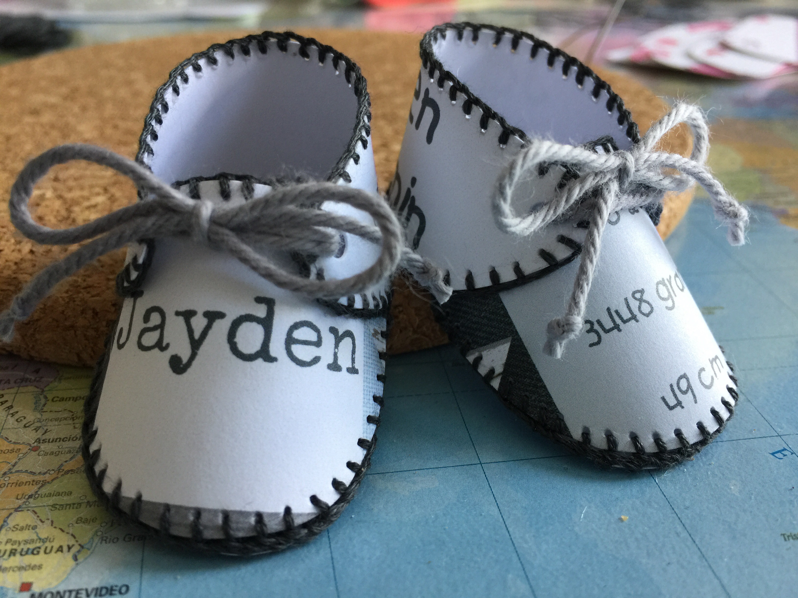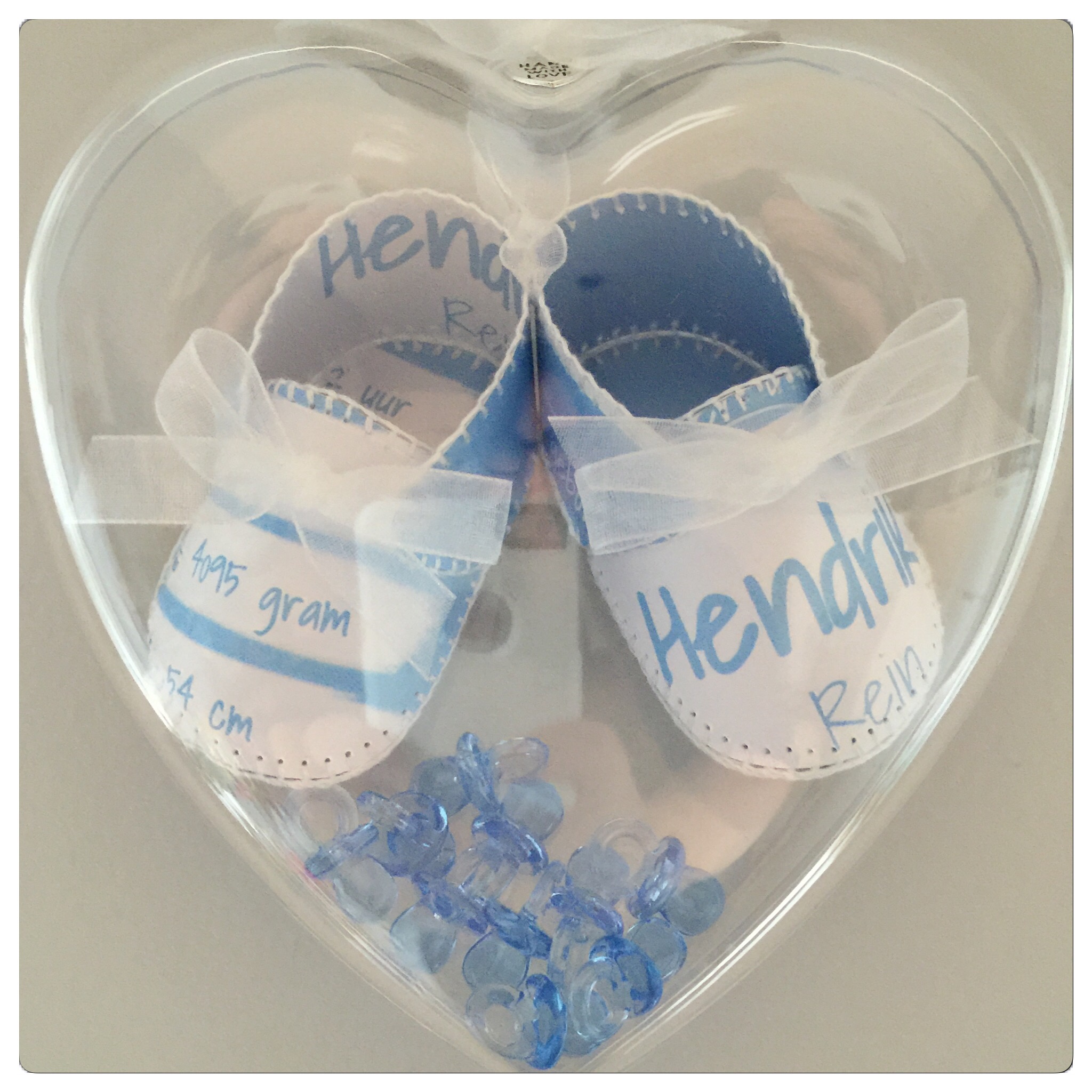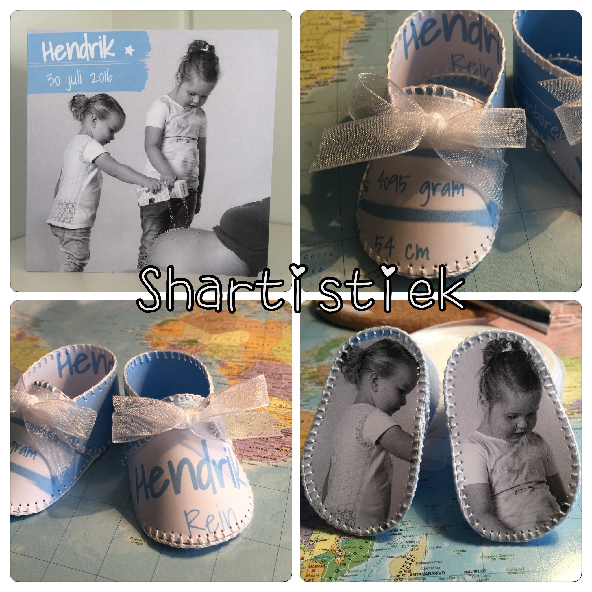 Voor Danique mocht ik ook al eerder geboorteschoentjes maken! Dit keer vroeg ze me om een paar voor haar zoontje Lennon te maken en voor Jake de zoon van een vriendin.Bij de kaartjes had ze een briefje gedaan met daarop de kleuren van de kamers van beide kindjes. Ik heb deze kleuren terug laten komen.