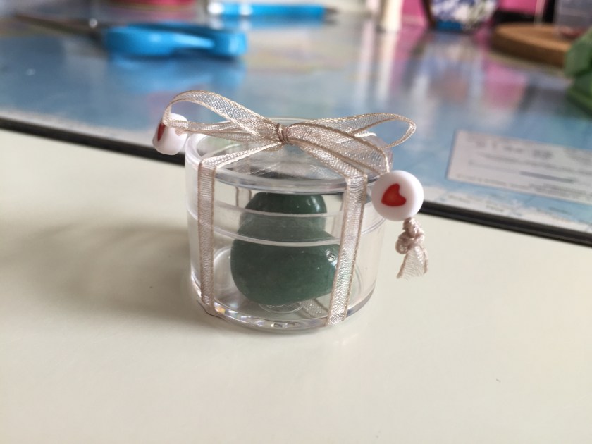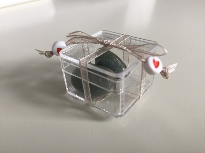Met een berg spelden en een meetlint in de aanslag, bevestigde ik de letters op de juiste plek op de wimpels. Ik wilde de letters er met de hand op gaan naaien, voor het ‘handgemaakte effect’. Ik heb altijd een grote voorraad borduurgaren voor de geboorteschoentjes, dus voor alle kleuren vilt had ik bijpassend garen tot mijn beschikking.