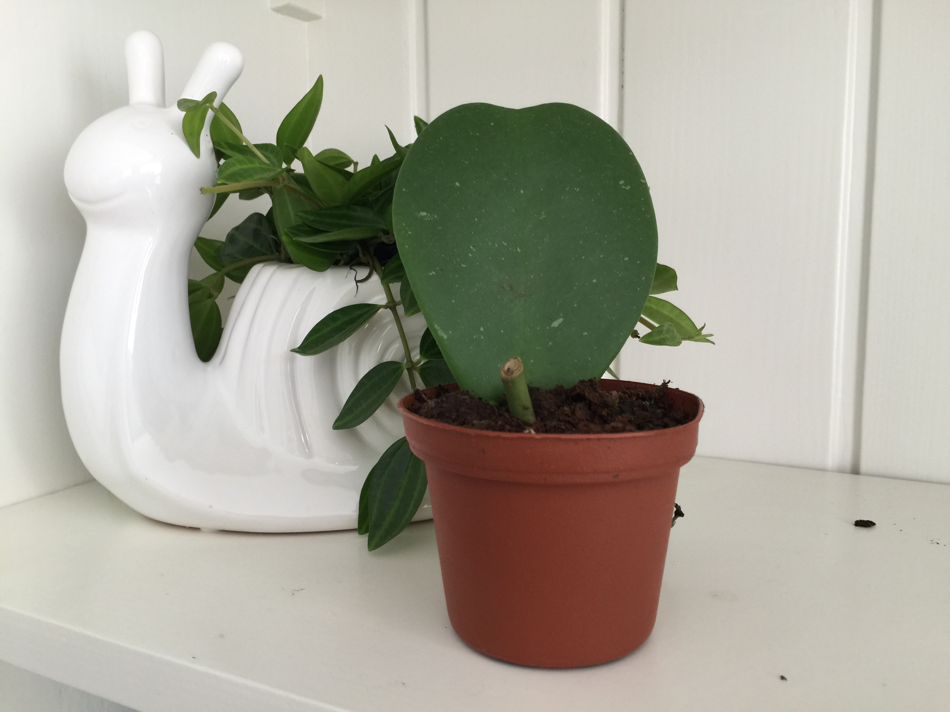 De pot kocht ik bij de Action. Niet helemaal mijn smaak, maar zij waren nog open op vrijdagavond en het was uiteraard een koopje. Ik ben benieuwd hoe ze verder gaat groeien en of we mooie wasbloemen gaan zien.