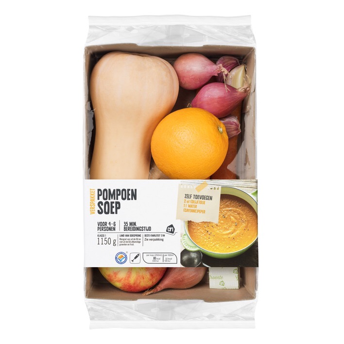 Afgelopen week kocht ik een kant-en-klaar pompoensoep pakket bij de Albert Heijn (€2,99).