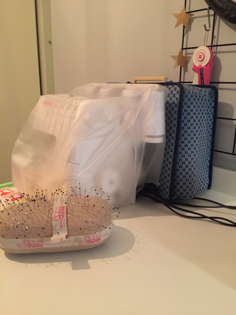 Het verliep allemaal voorspoedig. Buiten wat speldenprikjes in mijn vingers, had ik genoeg garen, bleef mijn naaimachine naald heel en kwam er geen tornmesje aan te pas. Fijn als het zo mee zit. Ik ben erg blij met het resultaat.